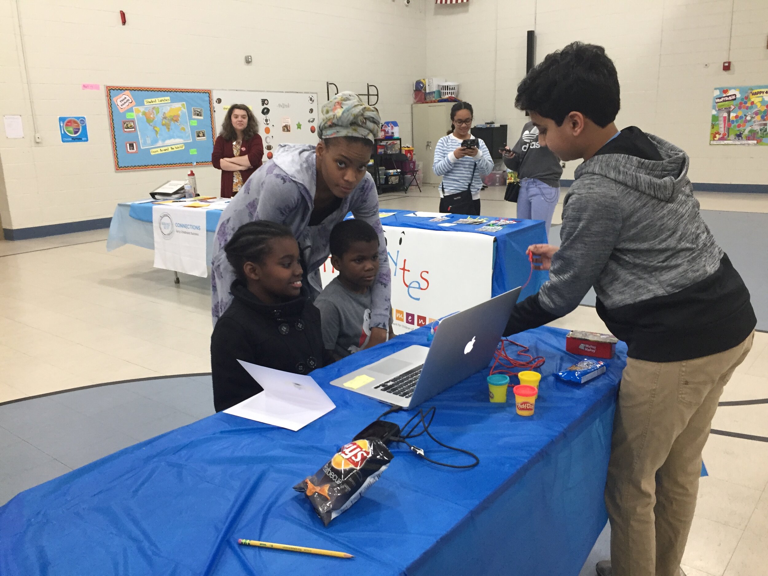 Family STEM night was open to students of Pine Hill School district and their families in association with Robin’s Nest Connections. There were 4 stations that were set up. A Science station, a math station, Engineering station and Technology station. Each station had child-friendly activities which aroused the curiosity in these young children. A science station (with art) had experiments with Circuits and Gears, children made their own electronic greeting cards. Math had activities based on logical reasoning and what parents can do at home, Engineering station had design challenges and Technology station had the students play keyboard on the computer via play dough.
